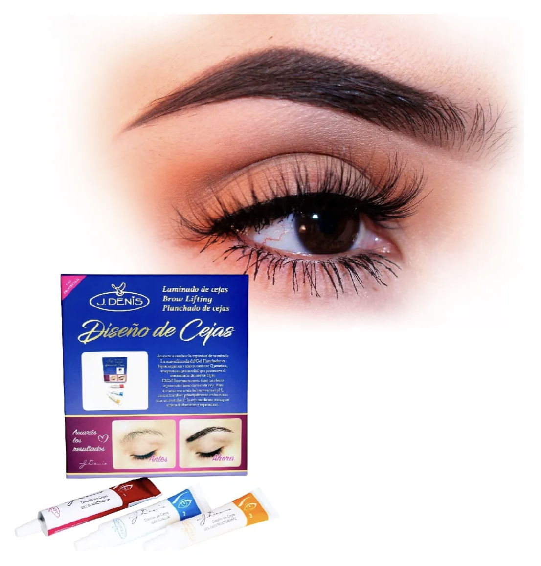 Brow Lifting: Diseño de cejas J.Denis+Adhesivo libre de latex+Peine para cejas.
