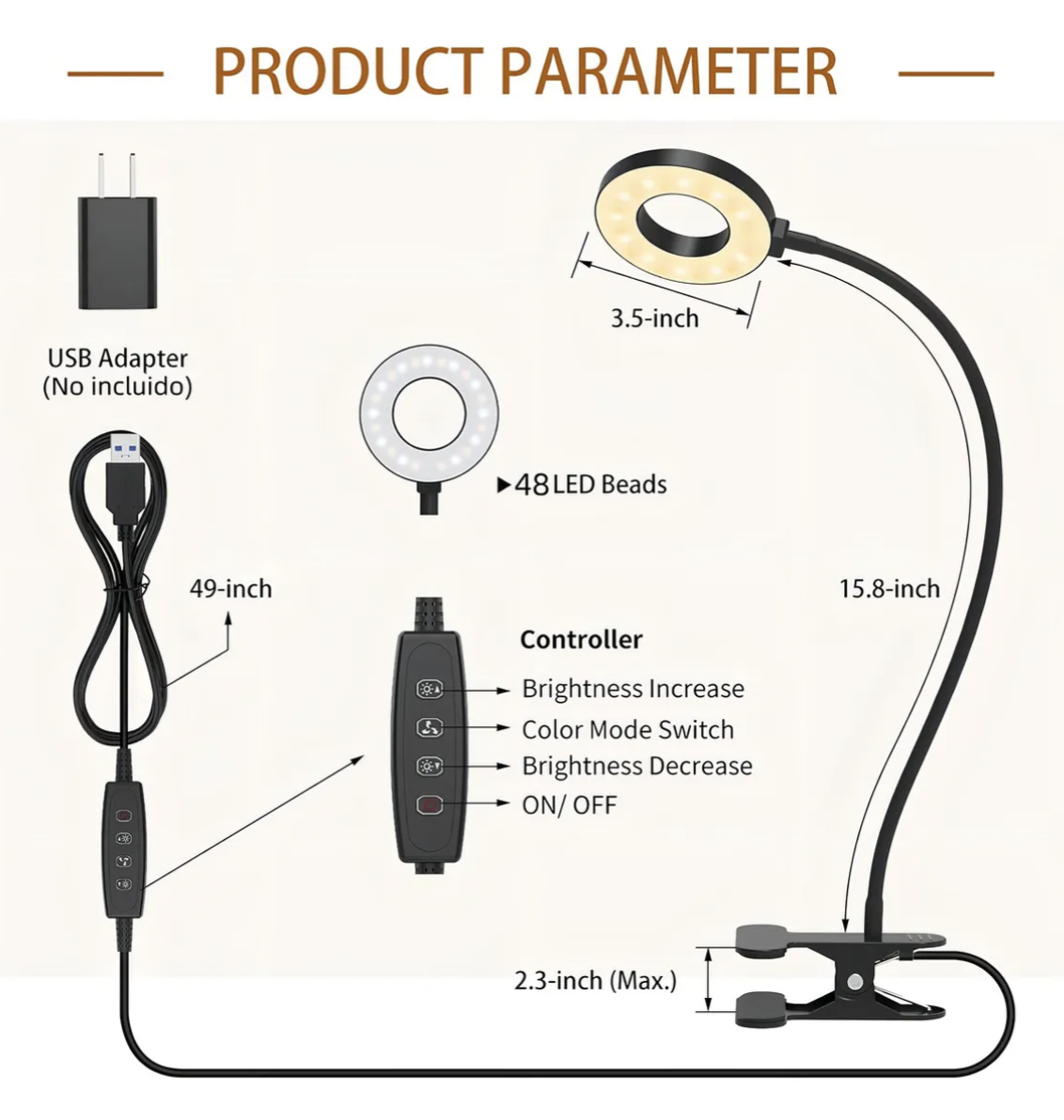 1. Iluminación 48 LED eficiente: Diseño de estructura de anillo elegante, disipación de calor rápida, que proporciona una luz sin parpadeo y sin parpadeo, suave para los ojos y evita la fatiga ocular, muy adecuado para usar como lámpara. En la oficina, lámparas de lectura y de estudio para estudiantes, lámparas de trabajo para arquitectos y artistas, y lámparas de lectura de cabecera.